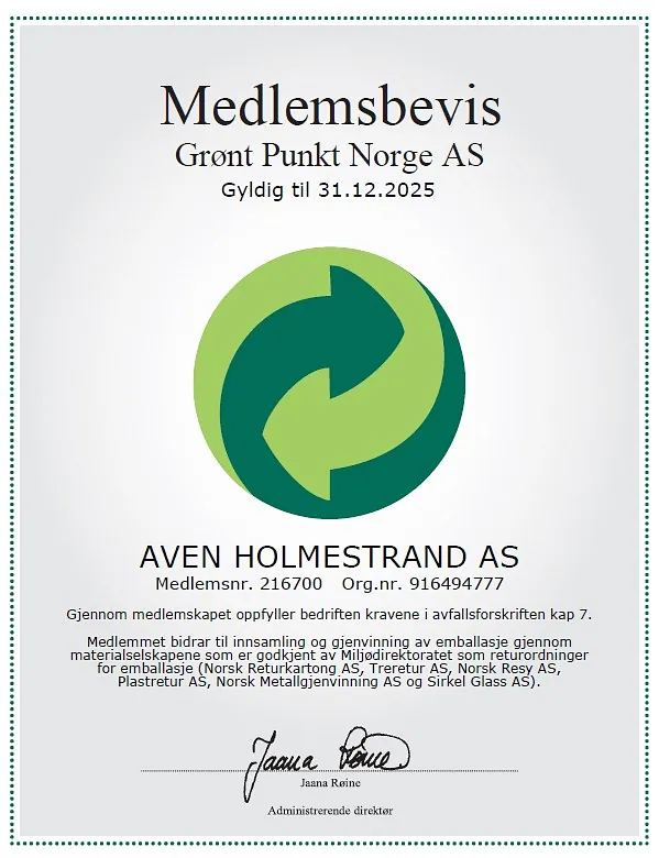 - Medlemskap i Grønt Punkt Norge AS