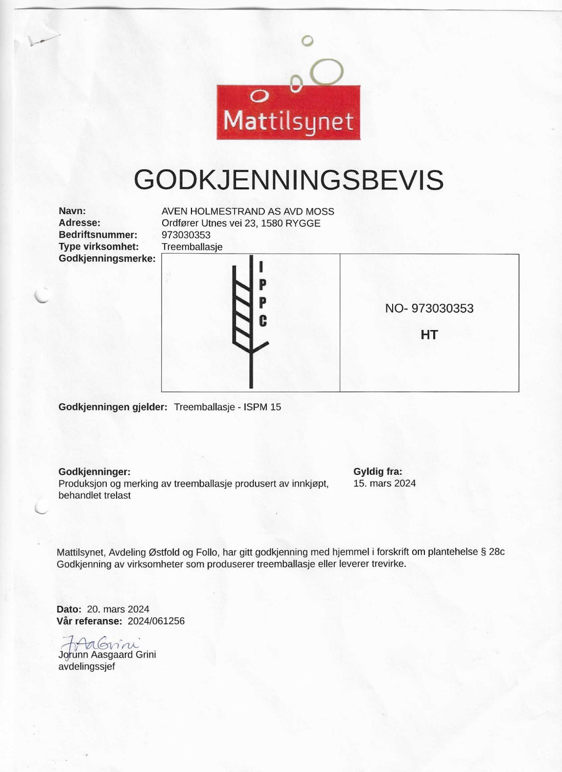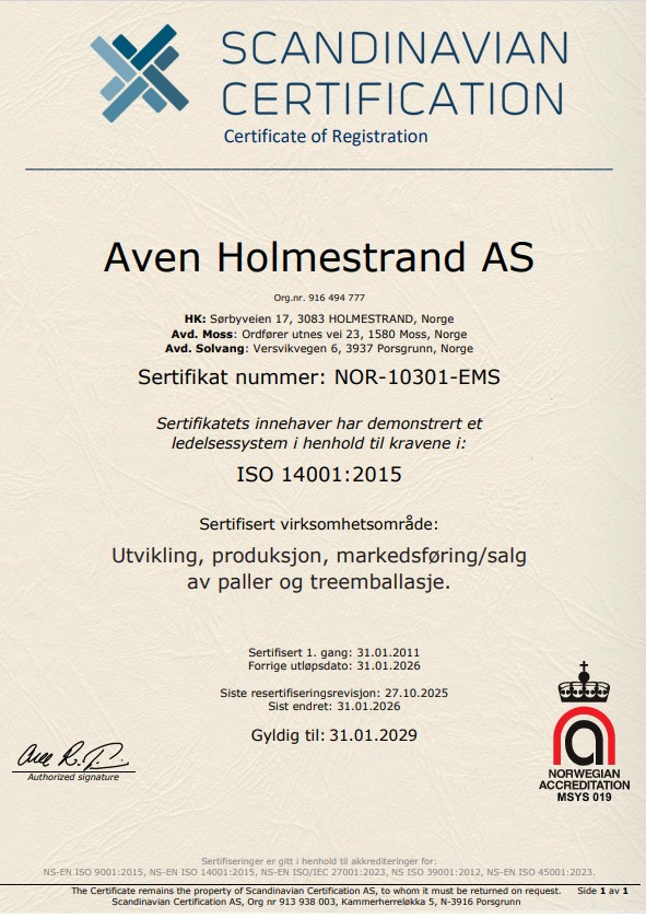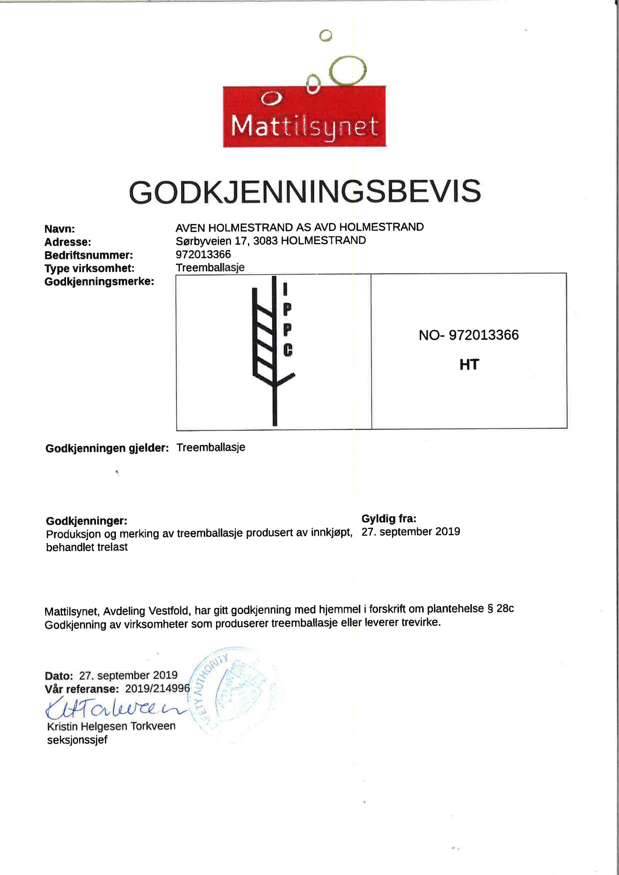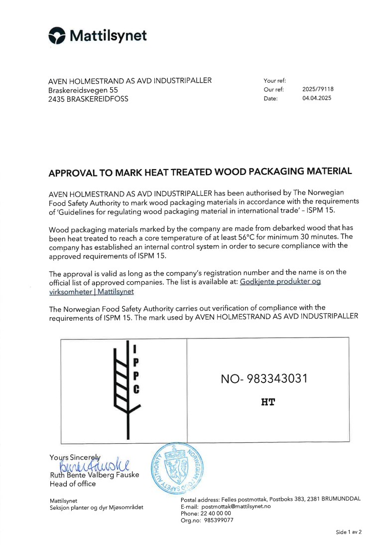 - Godkjenning av Mattilsynet for produktmerking i henhold til ISPM15