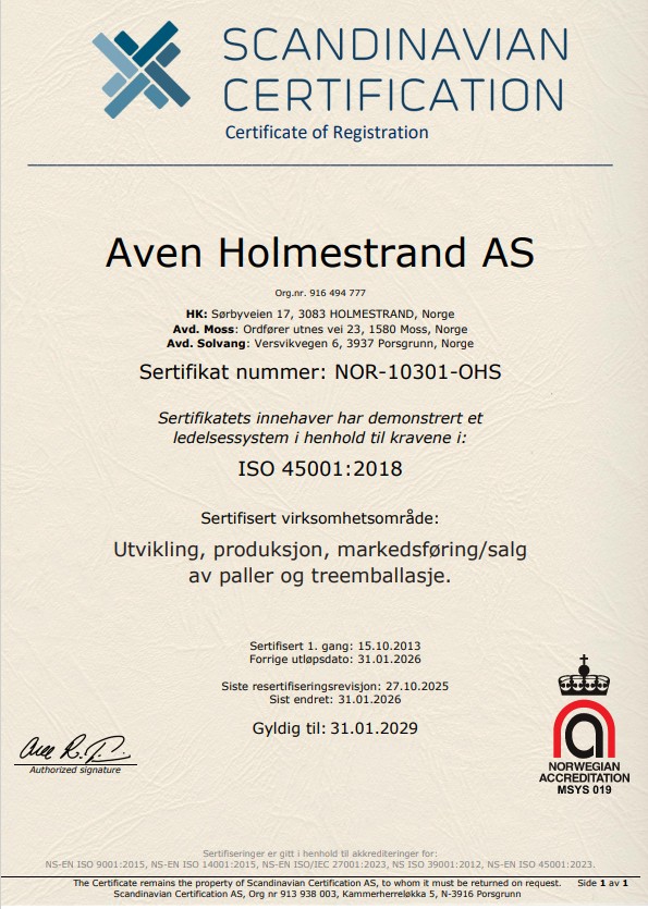 Sertifikater for Aven Holmestrand AS